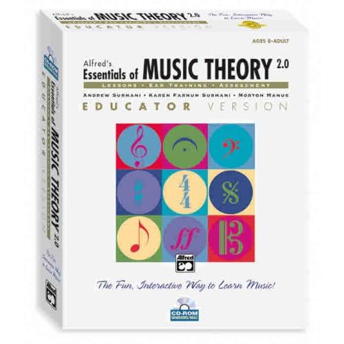 Alfred's Essentials of Music Theory Software Volume 1 covers all of the material in Student Book, Volume 1 (item 00-17231) and includes narration of new concepts, animation, exercises, games and ear-training with recordings of a variety of acoustic instruments to motivate students while strengthening musical skills. The program includes randomized exercises, ear-training and graded reviews for each unit. A complete glossary of terms and symbols with definitions, pronunciations and visual/aural examples is also included.The educator version of the software allows optional study of Alto and Tenor clefs and printing of individual scores. It is MIDI compatible on selected screens and allows for the unlimited creation of student records. The educator version also offers the ability to access multiple student records, create custom tests (including your own original questions), print class lists, import and export student records in batches, track individual student progress and even set a minimum grade requirement that students must meet to advance to more difficult lessons. This version is intended for educators with one computer in a classroom, or for private lesson/studio use where tracking the progress of multiple students is helpful. Appropriate for ages 8 to Adult. PC/Mac compatible. Volume 1 (Lessons 1-25): Treble & Bass Clefs * Optional Alto & Tenor Clefs * 4/4, 3/4 & 2/4 Time Signatures * Flats, Sharps & Naturals * Whole & Half Steps * Dynamic Signs, Temp Markings & Articulation * Up to Eighth Notes & Rests. The complete line of Alfred's Essentials of Music Theory includes Student Books, a Teacher's Answer Key, Ear-Training CDs, Double Bingo games, Flash Cards, Reproducible Teacher's Activity Kits, and interactive software for students and teachers in private study, studio and network environments.